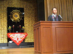本来ならば「朝の礼拝」があるところですが、学期に1回の「講堂礼拝」を行いました。
