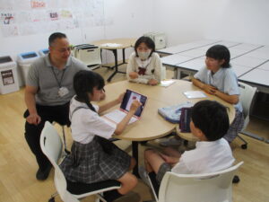 今年度から小中連携を一層推進するため、中高の英語科教員が小学校へ授業に行っています。