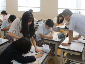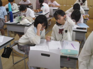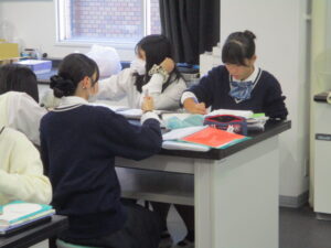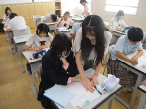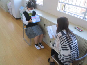 英語の時間に一人ずつ口頭試問を受けている人たちもいました。
