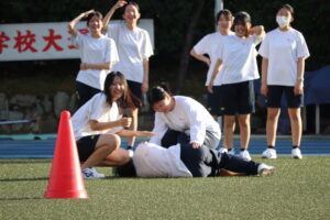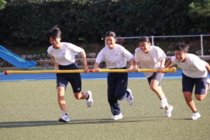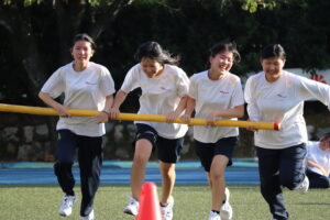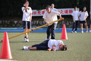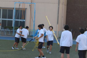 はじめは大繩跳び、続いてはバンブージャンプ(本校では「瀬戸の渦潮」)、そしてリレー、
