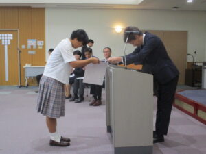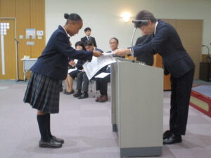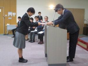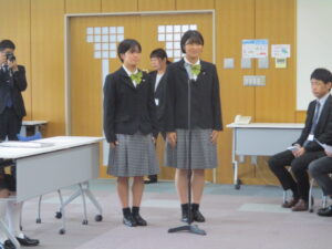表彰者を代表して高校ソフトテニス部の2人がお礼のあいさつを述べました。