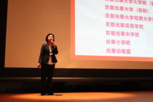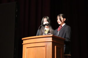 講堂で行った全体会の様子から紹介します。