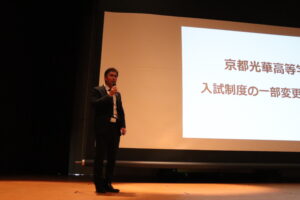 学校長挨拶・副校長からの説明・入学広報部長からの出願の仕方の訂正などが中心である全体会が行われました。