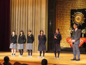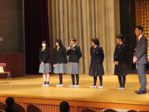 これに対して中高合わせて5人の生徒が壇上に上がってきて思いを述べました。