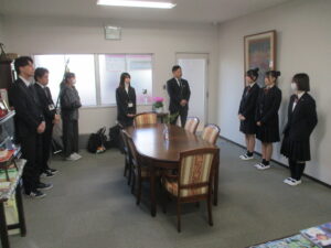 校長室に集まり、関係の先生方から激励の言葉をかけてもらっていました。