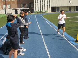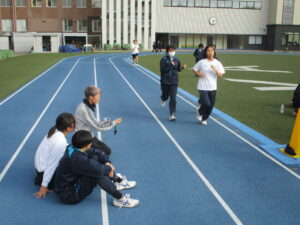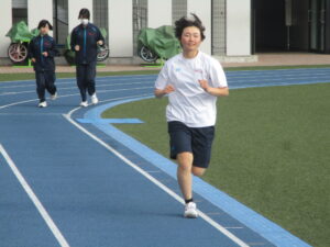 1000m走ということで頑張っていました。3分台で走りきる生徒もいるようです。