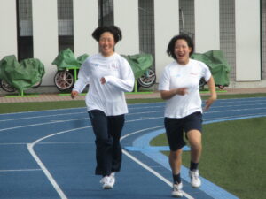 ぽかぽか陽気のなか、高校2年生が体育の授業で持久走に取り組んでいました。