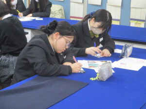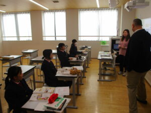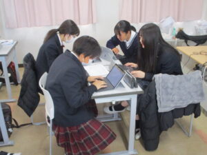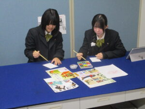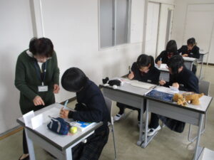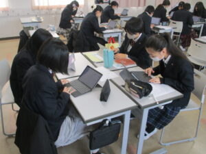 授業は、高校2年伝統文化の書道、中学2年の英語、高校1年の情報、中学2年伝統文化の和歌です。