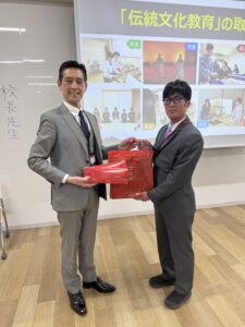 歓迎セレモニーに続いて、中学生と一緒に本校の伝統文化教育を体験されました。