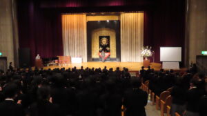 始業式は「総礼」→「学校長の話」→「生徒の意見・感想・決意」→「担任・部活動顧問等の紹介」と進行しました。
