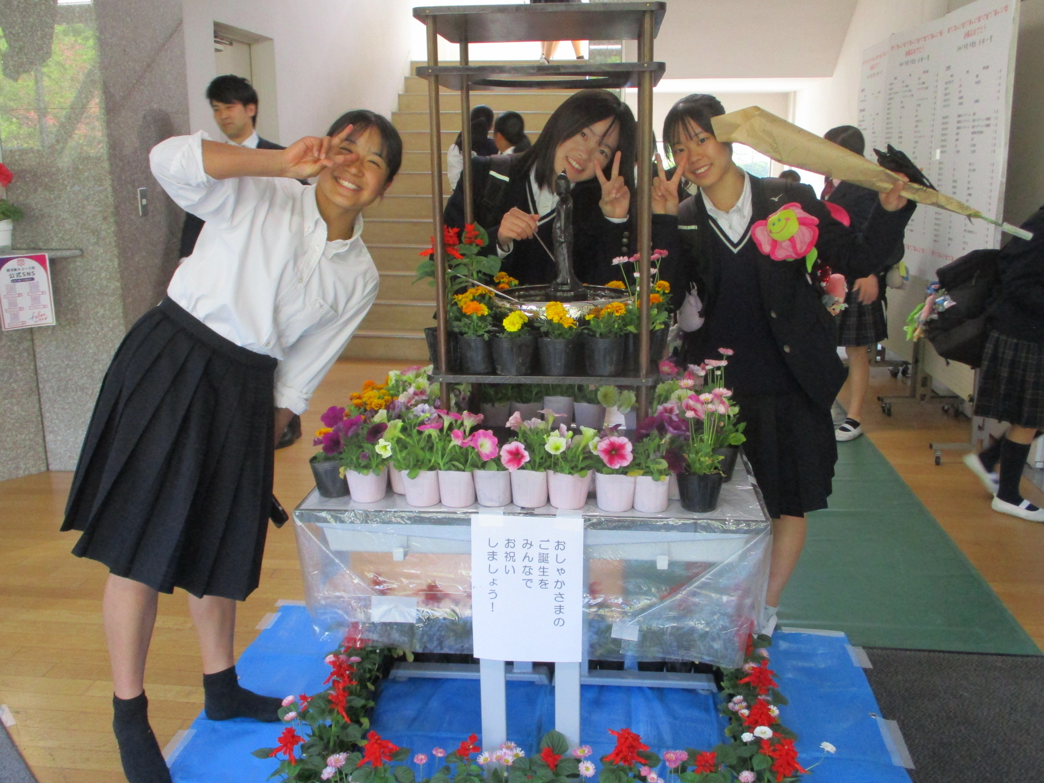この日は、生徒が一輪ずつの花をもって登校してくることろから始まります。