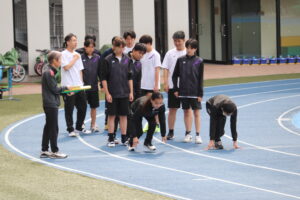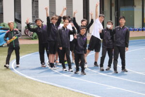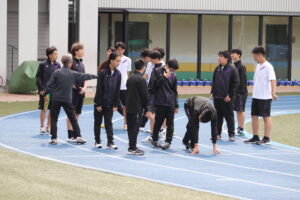 スポーツテストに取り組む男子生徒たちです。誰かが好記録を出すたびに歓声が上がるようです。