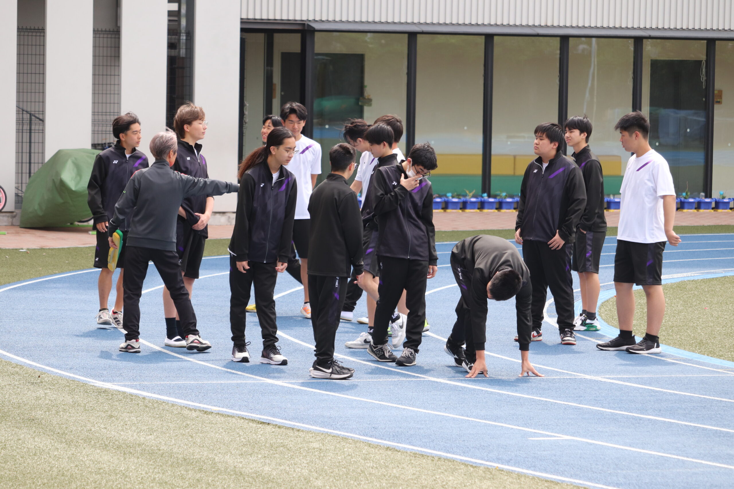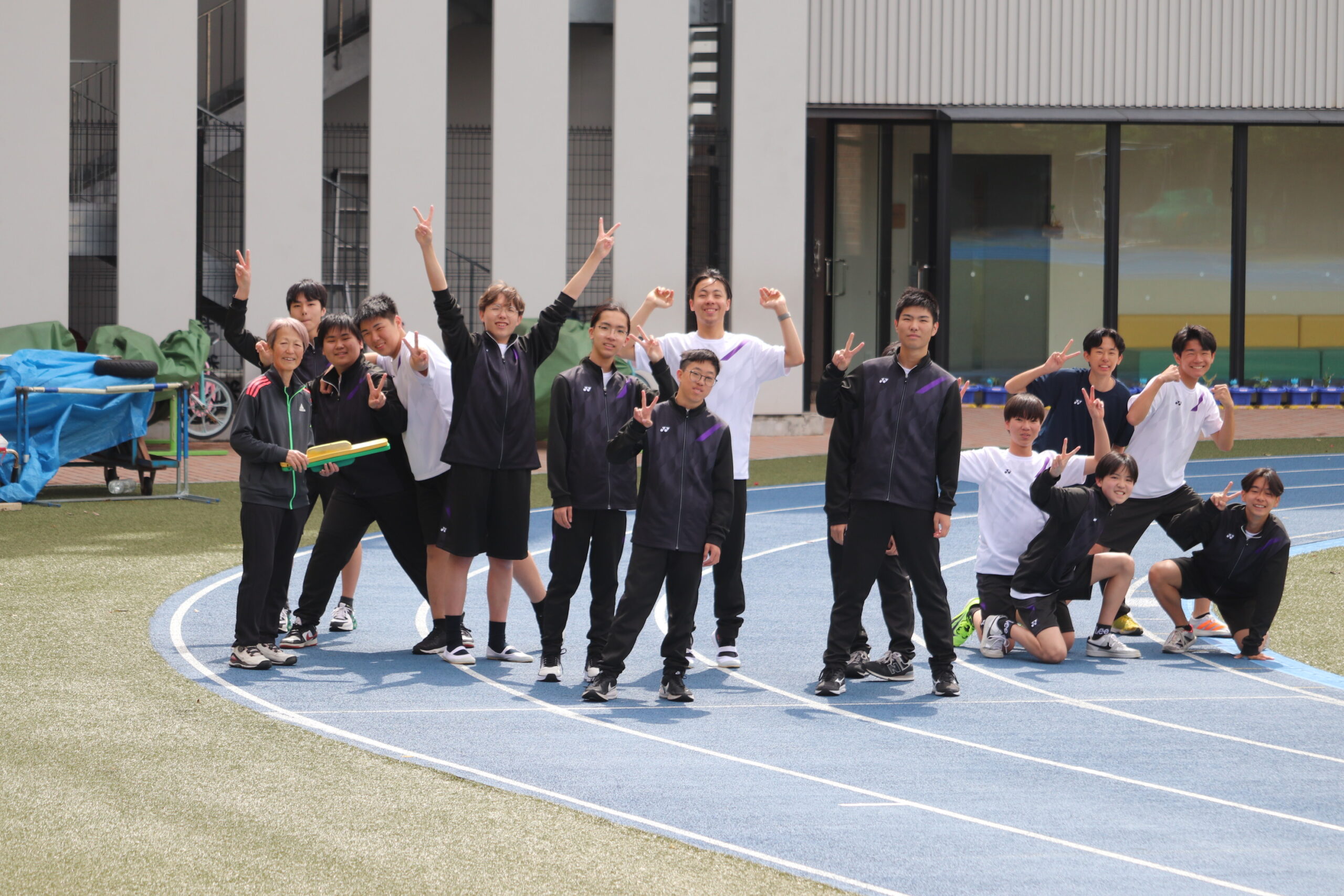 職員室や事務室、入学広報部の部屋から教職員が微笑ましくその様子を見ています。