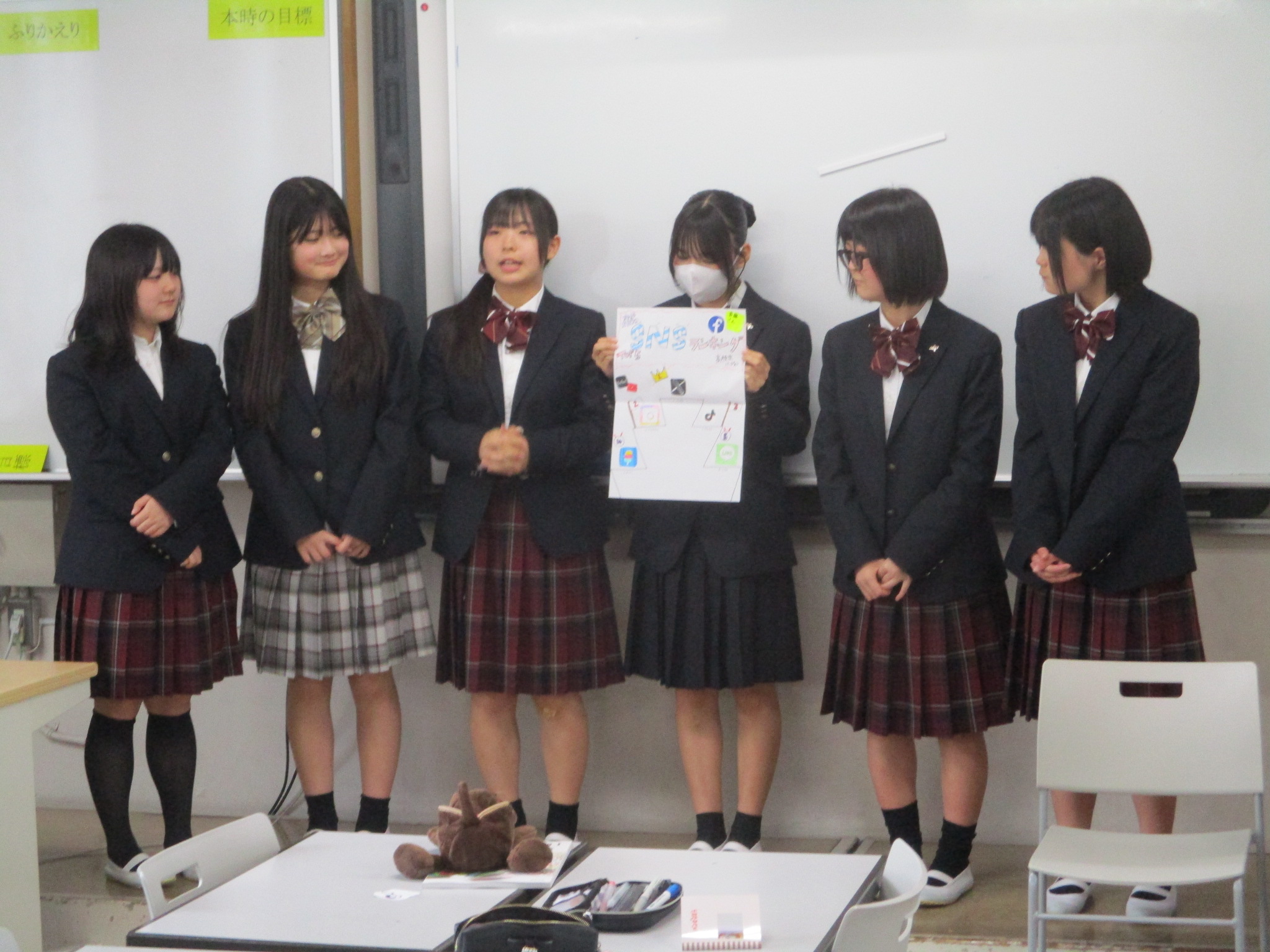 英語の時間は丁寧に進行していましたし、情報の時間にはプレゼンテーションが行われていました。