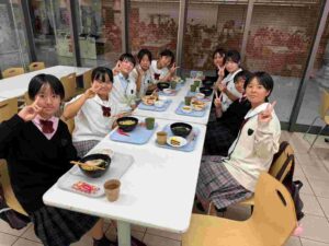 最後は,大学生も多く利用する良心館地下1階の食堂にて学食体験を実施しました。丼や麺類,小鉢などの種類も多く,目移りしてどれにしようか決めかねる生徒もいました。