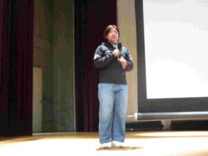 (オープンスクールにて新入生に向けて高校時代の体験を話しているときの画像)
